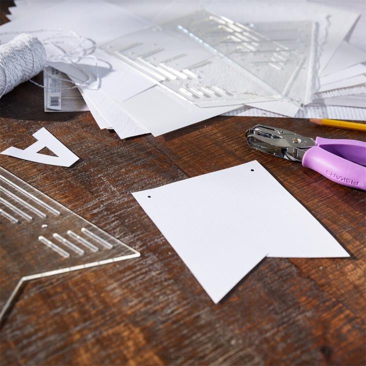 Luo ammattimaisen näköisiä bannereita kodin ja juhlan sisustukseen fiskarsin bannerisarjan, kolmen bannerimallin kuratoidulla valikoimalla ja softgrip-käsirei’illä. yhtenäisten muotojen leikkaaminen kartongista, kankaasta ja muusta on helppoa kummassakin keihäänkärjessä, viirissä ja pääskyläisen hännän muotoisissa bannerimalleissa olevien integroitujen jäljitysraitojen ansiosta. Jokaisessa kestävässä mallissa on 5 eri kokoa, joten ne sopivat ihanteellisesti ripustettavan sisustuksen, korttien, pöytäkylttien ja muiden luomiseen. yhdistä bannerit yhteen käyttämällä mallien käteviä ohjattuja reikäsijoituksia ja softgrip-käsirei’itystä, joka tekee nopeasti 1/8″ reiät bannerin muotoihin ripustamista varten.