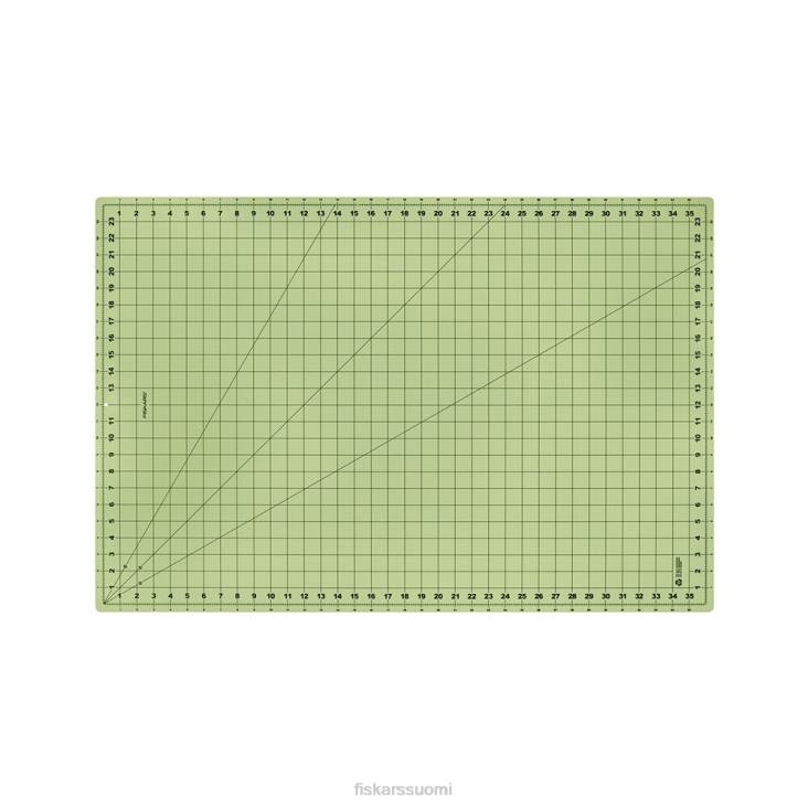 Erittäin suuri, maaystävällinen fiskars ekoleikkuumatto tarjoaa runsaasti tilaa työskennellä suurissa projekteissa. Tämä leikkausmatto on optimaalinen kankaan leikkaamiseen suoraan pultista tai suurempien neliöiden tai pitkien nauhojen käsittelyyn. Tämä leikkausmatto sisältää helposti luettavat mittaritikot molemmilla puolilla sekä 30-, 45- ja 60-asteen esijännitysviivat helpon ja tarkan muoto- ja kulmaleikkaus. Fiskars leikkuumatot ovat kaksipuolisia ja valmistettu korkealaatuisesta materiaalista, joka on räätälöity pyörivän leikkurin käyttöön ja työpintavaurioiden estämiseen. ekologiset leikkausmatot on valmistettu 100-prosenttisesti kierrätettävästä polypropeenista ympäristöystävällistä hävittämistä varten. leikkuumatot on parasta säilyttää tasaisesti, poissa auringonvalolta ja äärilämpötiloista. ne voidaan pestä lämpimällä vedellä ja miedolla saippualla.