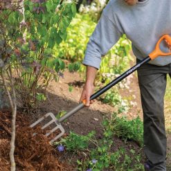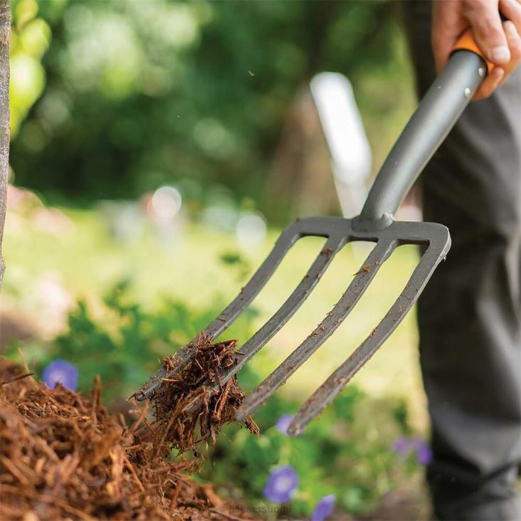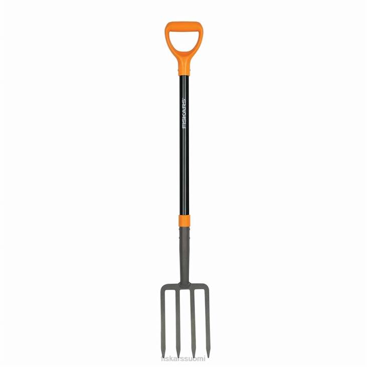 Kestävässä Fiskars-haarukassa on taottu teräsrakenne, ja se sopii erinomaisesti irtonaisten materiaalien, kuten maan, kompostin, multaa ja paljon muuta, sorvaamiseen, löysäämiseen ja nostamiseen. kevyt, lasikuitukahva tarjoaa voimaa, kun taas D-kahvan muotoilu pitää ranteen neutraalissa asennossa vähentääkseen rasitusta, mikä parantaa mukavuutta ja hallintaa. jauhemaalattu teräs auttaa myös estämään ruostetta.