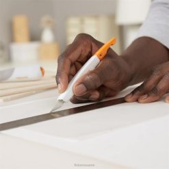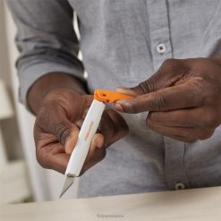 Harjallisesti suunniteltu työskentelytapaa varten helposti vaihdettava yksityiskohtien veitsi tekee vaihtamisesta eri leikkaustehtävien välillä helppoa. Loistava valinta paperin, kartongin, ohuen muovin, valokuvien, kankaiden ja muiden leikkaamiseen, veitsessä on helppo teränvaihtolukko, jonka avulla voit vaihtaa teriä sekunneissa. Pysy mukavasti hallinnassa isoissa ja pienissä projekteissa ergonomisesti muotoillun kahvan, jossa on softgrip-kosketuspisteet. lisäksi rullaamaton muotoilu ja mukana tuleva teräsuojus lisäävät turvallisuutta. Tämä monipuolinen veitsi on yhteensopiva useimpien tavallisten terien kanssa, joten voit aina käyttää materiaaleihisi ja projektiisi sopivaa terää.