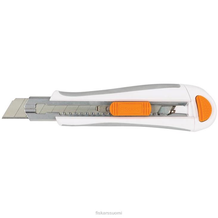 - fiskarsin irrotettavassa veitsessä on kahdeksan veitsenterävää napsautusta. reunat yhdessä 18 mm:n teräkammiossa työkalulle, joka kulkee pitkän matkan