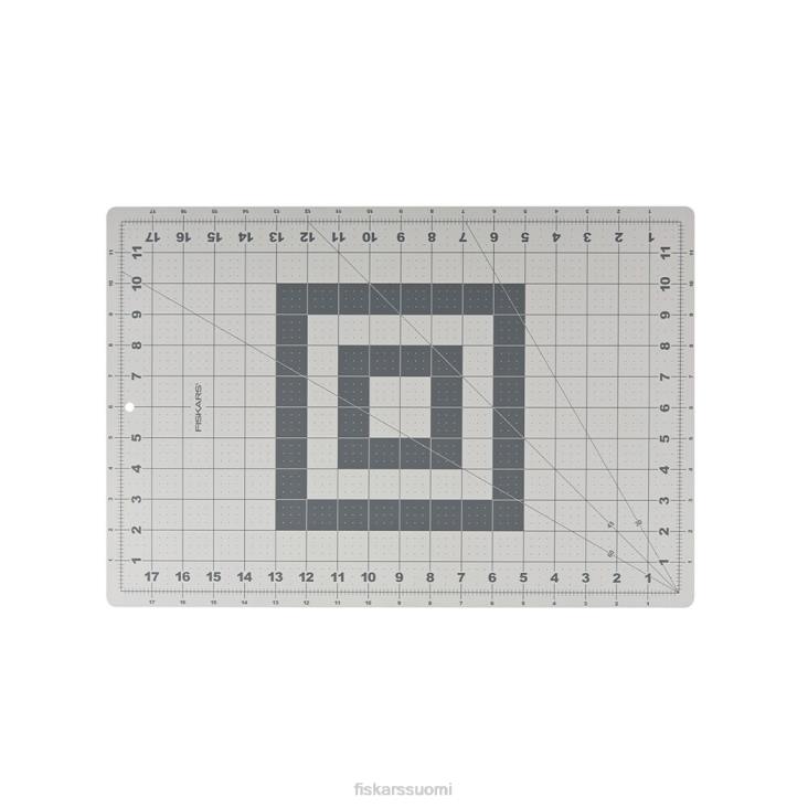Fiskars -leikkausmatto on ihanteellinen koko helppoon kuljetukseen, kätevään säilytykseen tai kankaan leikkaamiseen pienessä työtilassa. Leikkausmatto sisältää mittaristikoita molemmilla puolilla ja vinoviivat helppoa, tarkkaa muoto- ja kulmaleikkausta varten. sen korkealaatuinen itsekorjautuva materiaali sopii täydellisesti käytettäväksi pyörivän leikkurin kanssa ja suojaa työpintoja missä tahansa. Leikkuumattoja on parasta säilyttää tasaisessa, poissa auringonvalolta ja äärilämpötiloista, ja ne voidaan pestä lämpimällä vedellä ja miedolla saippualla.