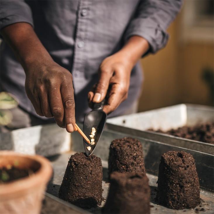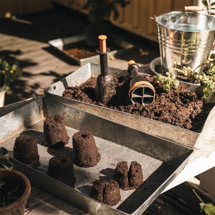 Fiskars & mullaharkkovalmistaja luo siemeniä aloittavia multalohkoja, jotka tuottavat terveellisempiä taimia ja vähentävät kertakäyttöisten aloitusalustojen ja palkojen tarvetta. maaperän lohkot edistävät vahvoja juurijärjestelmiä luonnollisen ilmaleikkauksen avulla ja estävät nuoria kasveja sitoutumasta juuriin. tämä vähentää siirtoshokkia ja tarjoaa tehokkaamman veden ja ravinteiden oton, kun kasvit siirretään ulos. rakenne itsessään puristaa siementä aloittavan maaperän asianmukaisesti ja varmistaa, että jokaisessa maapalassa on oikea määrä ilmaa, kosteutta ja koostumusta. luo yksi 3 1/2 tuuman lohko suuremmille siemenille ja kasveille tai neljä 1 tuuman maalohkoa pienemmille kasveille. Lisäksi työkalu asettaa reiän jokaisen lohkon yläosaan helpon ja optimaalisen siementen sijoittamista ja syvyyttä varten.