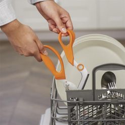 Suojaa pannut, pöydät ja leivonnaiset, säästät aikaa ja poistat astiat tällä modernilla keittiön tarpeella. erinomaisesti pizzan, leipomotuotteiden, munakkaiden ja muiden leikkaamiseen, ja niissä on lämmönkestävä nylonpohja, jonka avulla voit leikata melkein missä tahansa ilman, että sinun tarvitsee huolehtia pintojen naarmuuntumisesta. kohotettu kahva suurilla, mukavilla silmukoilla pitää kätesi poissa ruoasta, kun taas ruostumattomasta teräksestä valmistetut terät leikkaavat siististi yhdellä kertaa. saksien pohjaa voidaan käyttää myös pintojen puhdistamiseen. kun illallinen on ohi, irrota terät ja heitä ne astianpesukoneeseen helppoa ja perusteellista puhdistusta varten.