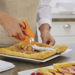 - ihanteellinen pizzan, leivonnaisten, quesadillojen, munakkaiden ja muiden leikkaamiseen suoraan pannulle, uunipellille tai lautanen
