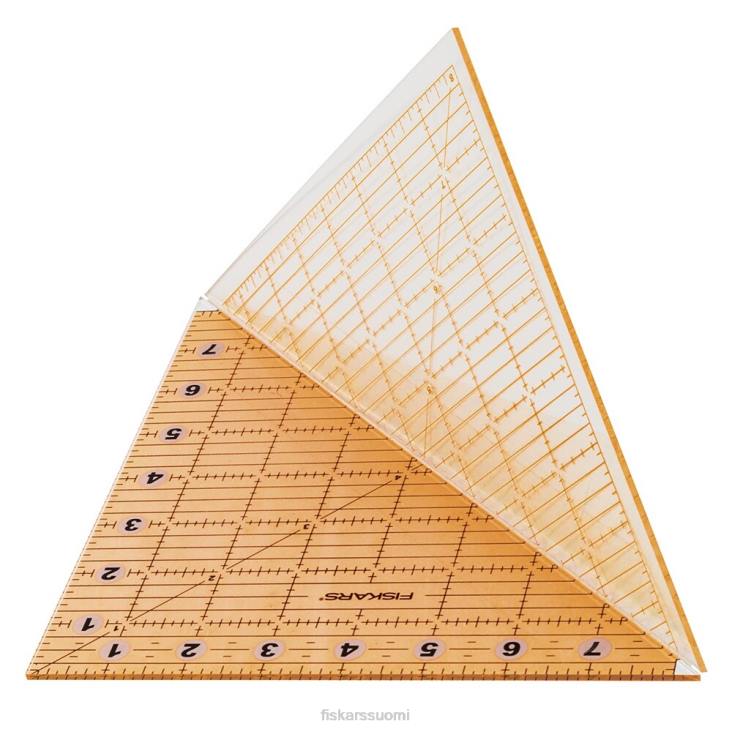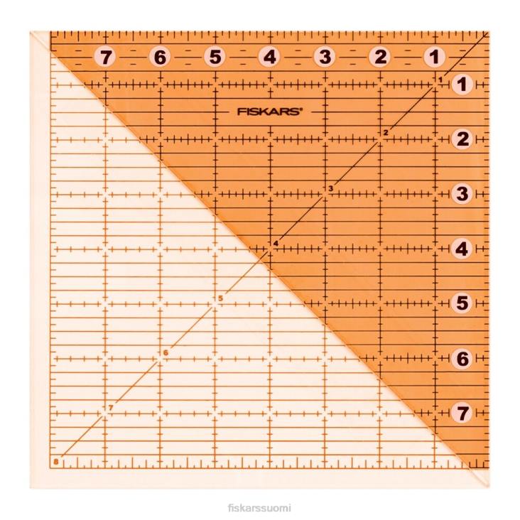Neliöi kulmat ja leikkaa puolineliönmuotoisia kolmioita, suorakulmioita tai neliöitä 1–8 tuumaa ilman kangasta. Tämä tukeva akryyliviivain taittuu puoliksi lisävaihtoehtojen saamiseksi, ja siinä on sisäänrakennettu 1/4″ saumanvara helpottaakseen mittaamista. Selkeän, kestävän saranan ansiosta viivain voi olla täysin tasainen tarkan kohdistuksen saavuttamiseksi. Merkinnöissä on selkeät leikkauskohdat parantamaan näkyvyyttä ja voidaan lukea vaaleilla, tummilla ja kuviollisilla kankailla.