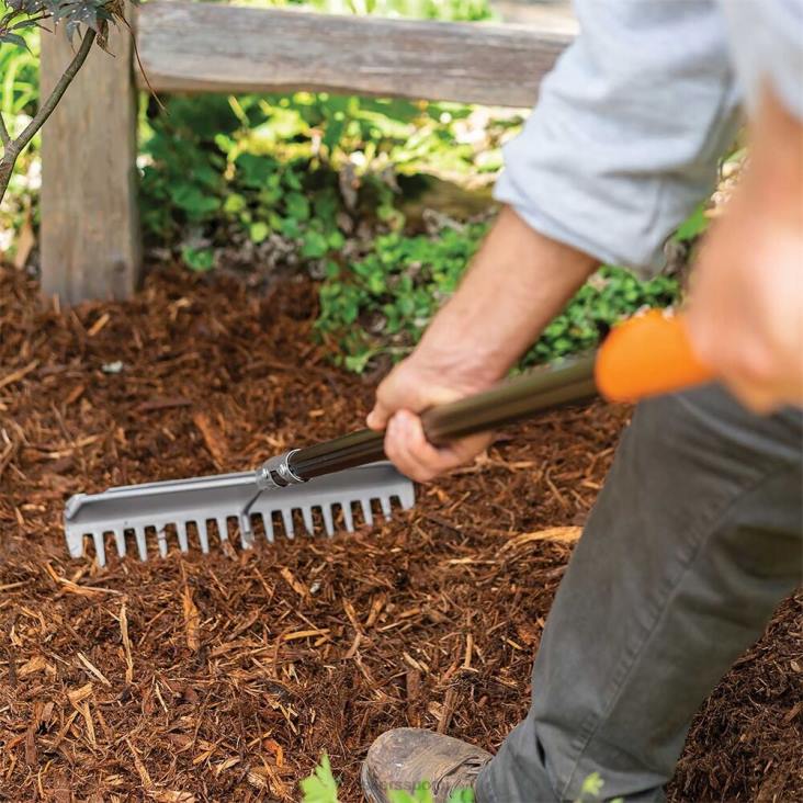 fiskars pro -puutarhaharava on äärimmäisen kestävä, joten se on ihanteellinen multaa, likaa ja soraa sekä olkipeittämistä varten. suulakepuristettu alumiinikahva takaa erinomaisen lujuuden, kun taas kaksoispulttiliitokset takaavat, että työkalu ei hajoa. kestävät, karkaistut metallipiikit kestävät hankausta ja taipumista, repivät helposti läpi kovaa maaperää ja kovettuneita likapaakkuja. Päässä on myös kolme metallitankoa, jotka lisäävät lujuutta, ja mukana tulee jopa luokitteluominaisuus. Lisäksi pisaran muotoinen varsi sopii paremmin kätesi muotoihin, kun taas hyvin näkyvässä, pehmeässä kädensijassa on useita pitoasentoja koko päivän mukavuuden ja hallinnan takaamiseksi. Tämän haravan yksinkertainen ja kestävä rakenne tekee siitä luotettavan valinnan päivittäiseen ja laadukkaaseen suorituskykyyn kaikissa olosuhteissa.