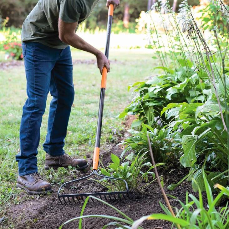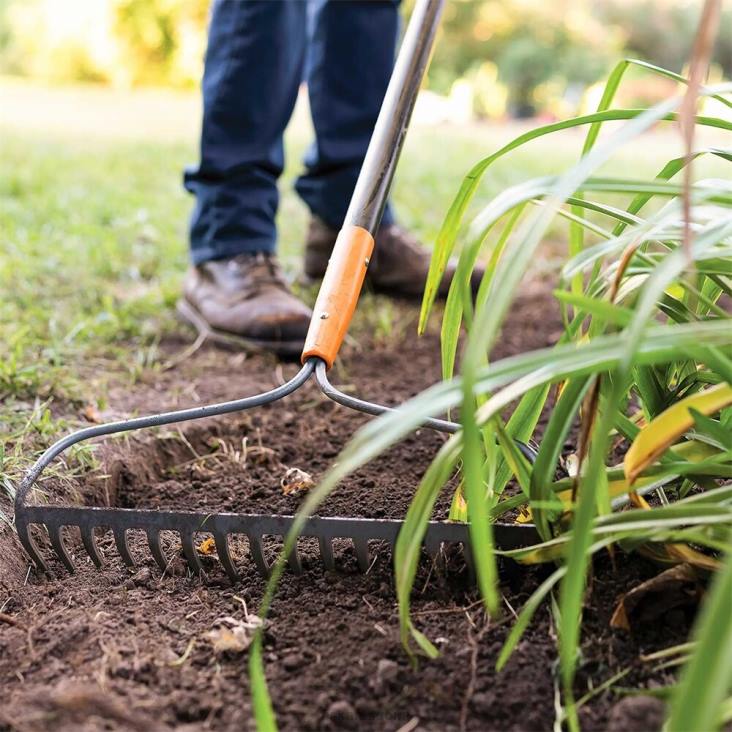 fiskarsin puutarhaharava sisältää järeät piikit ja niitatun pään, joka ei putoa, joten se kestää kovaa käyttöä. Tämä kestävä työkalu on ihanteellinen puutarhan maan murtamiseen tai tasoittamiseen sekä kuolleen ruohon poistamiseen nurmikoilta, ja siinä on myös lasikuitukahva lujuuden ja ihanteellisen jäykkyyden takaamiseksi sekä useita pitoasentoja mukavuuden ja hallinnan takaamiseksi. jauhemaalattu maalikerros auttaa myös ehkäisemään ruostetta.