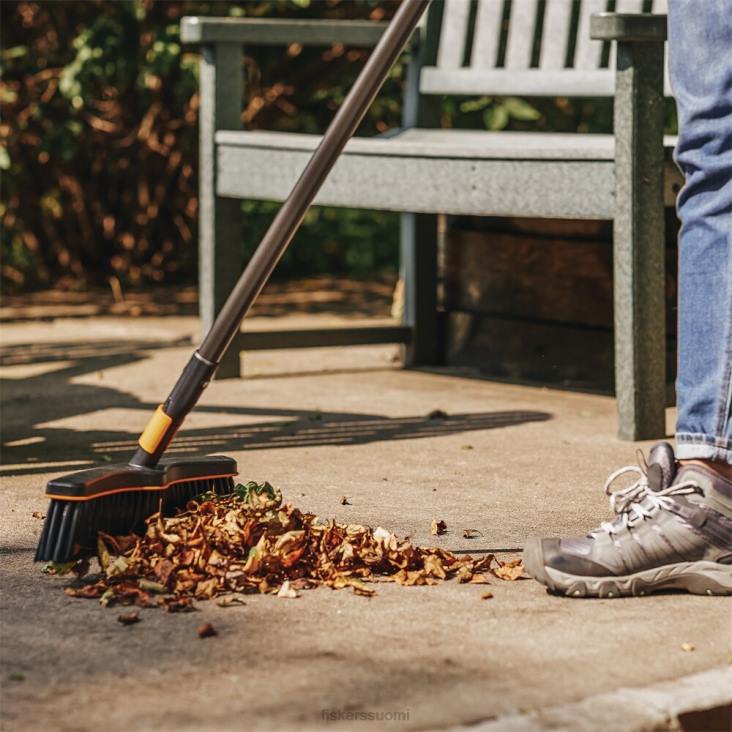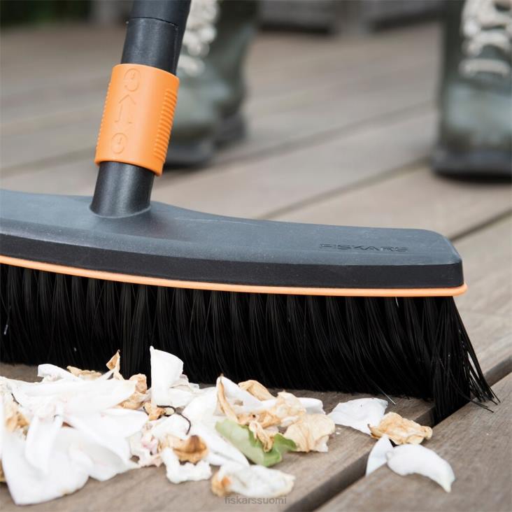 - fiskars & quikfit -ulkoiluharjan pää tarjoaa leveän pään ja pehmeät harjakset terassien ja puisten kansien nopeaan ja tehokkaaseen lakaisuun ja betonilattiat