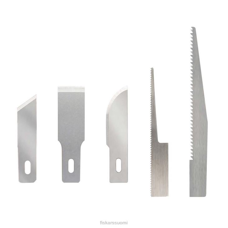 - sisältää yhteensä viisi terää: yhden #15 avaimenreikäsahanterän, yhden raskaan #18 taltanterän,yksi raskas #19-kulmainen taltanterä, yksi raskas #22-veistoterä ja yksi #27-sahanterä