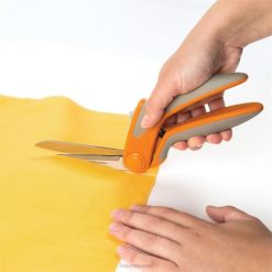 9″:n partateräksessämme helppokäyttöisissä kangassaksissa on korkealaatuiset ruostumattomasta teräksestä valmistetut terät, jotka on hiottu tarkasti erittäin teräväksi reunaksi terävien ja siistien leikkausten saamiseksi. Terät on myös testattu leikkaamaan aina kärkeen asti – välttämätön jokaiselle, joka leikkaa kangasta. Jousivaikutteinen rakenne avaa terät jokaisen leikkauksen jälkeen, mikä vähentää huomattavasti suurissa projekteissa tarvittavaa vaivaa. Ainutlaatuinen kädensijamme auttaa myös pitämään kankaan tasaisena pöydällä leikkaaessasi tarkkoja ja virheettömiä leikkauksia varten, kun taas erityinen pidennetty alaterä lepää kankaan alla, jolloin voit jatkaa leikkaamista ilman työkalun paikkaa. Muotoiltu kahva softgrip kosketuspisteillä tarjoaa turvallinen, mukava ote, ja helposti avattava lukko auttaa suojaamaan teriä kuljetuksen ja varastoinnin aikana.