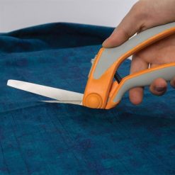 - ainutlaatuisen kahvan muotoilun ansiosta kangas on tasainen tarkkoja leikkauksia varten, kun taas pidennetty alaosa terä lepää kankaan alla, joten voit leikata ilman uudelleenasentoa
