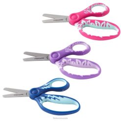 Fiskarsin pehmeäkärkiset, tylppäkärkiset lastensakset on harkittuja, ja niissä on turvareunaiset terät, tylppä kärki lisää turvallisuutta ja erityisesti lasten käsiä varten suunnitellut kahvat heidän rakastamissaan kirkkaissa väreissä. mukava softgrip-kahva parantaa pitoa ja vähentää käsien väsymistä, kun taas suurempi sormilenkki ja ergonominen peukalonsilmukka tarjoavat myös luonnollisen ja mukavamman istuvuuden lasten sormille. Optimoitu avautumiskulma auttaa myös lapsia avaamaan terät menettämättä pitoa, mikä parantaa hallintaa. Lisäksi kahva on rakennettu olemaan linjassa terien kanssa, mikä mahdollistaa paremman tarkkuuden leikkaamisen aikana ilmassa. Ihanteellinen neljävuotiaille ja sitä vanhemmille lapsille, lasten sakset ovat täydellinen tapa kasvaville lapsille jatkaa leikkaustaitojensa kehittämistä.