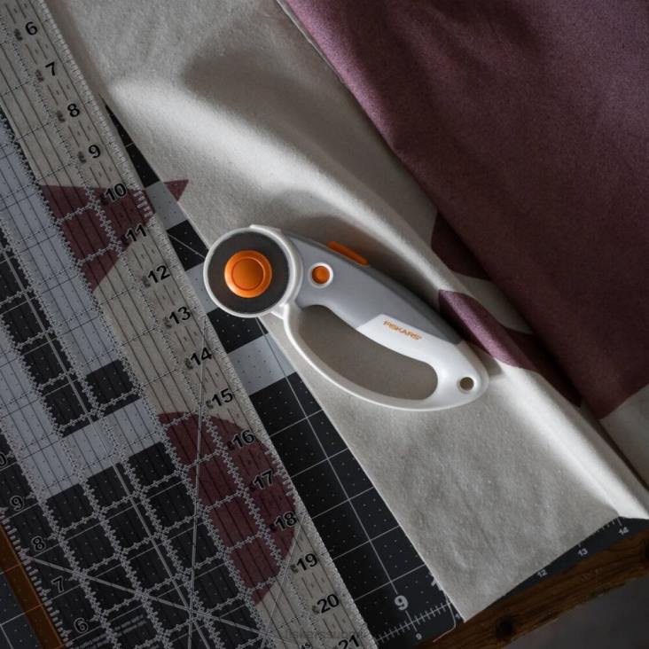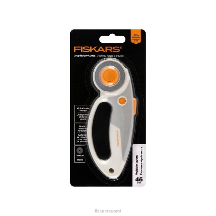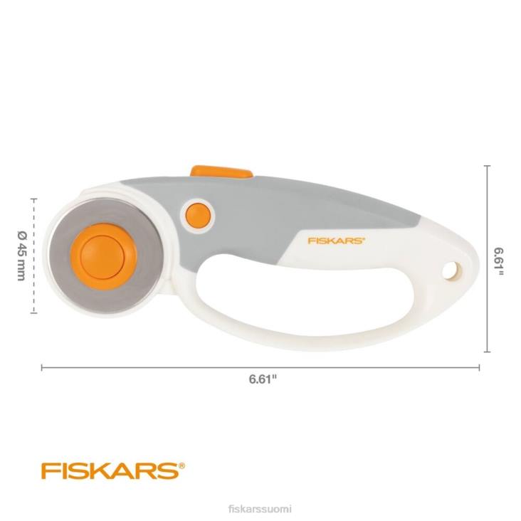 - Fiskarsin titaanilenkkipyörivä leikkuri (45 mm) on ihanteellinen useiden useiden kangas-, huopa- ja vinyylikerrokset, 7 mm:n terän näkyvyys käytössä