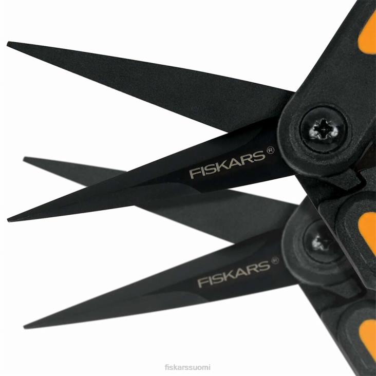 - fiskarsin tarttumattomissa mikrokärjessissä on tarkat terät, jotka leikkaavat kärkeen asti puhtaiden ja terveiden leikkausten saamiseksi kasveihin ahtaissa tiloissa.