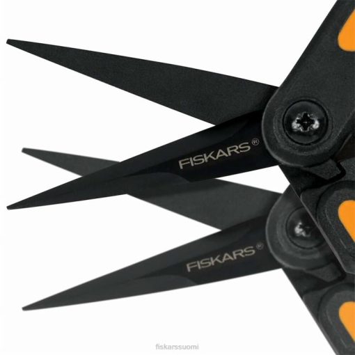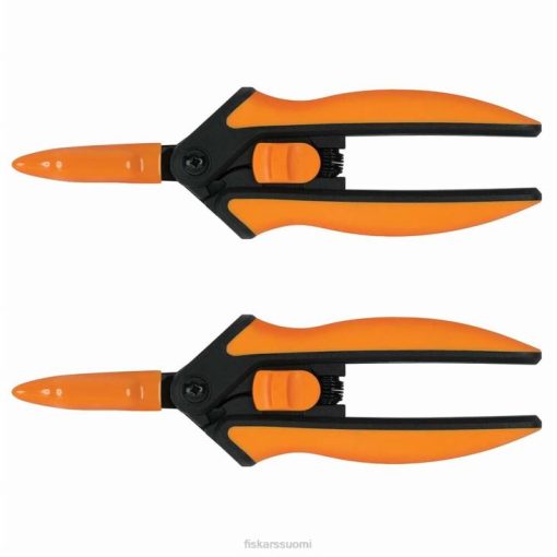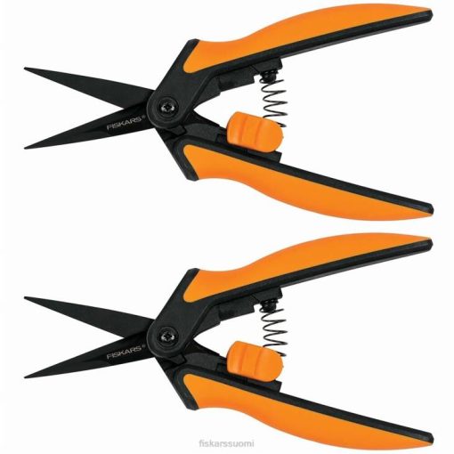 - fiskarsin tarttumattomissa mikrokärjessissä on tarkat terät, jotka leikkaavat kärkeen asti puhtaiden ja terveiden leikkausten saamiseksi kasveihin ahtaissa tiloissa.