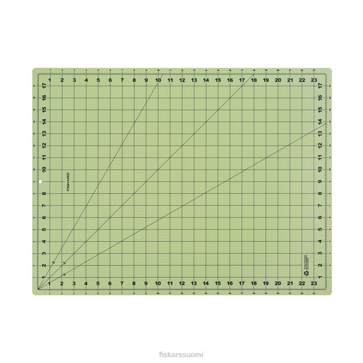 suojaa työpinnat ja leikkaa kangas koko leveydeltä suoraan pultista pitkäkestoisella, maaperäystävällisellä fiskars ekoleikkausmatolla . Täydellisen työhön mitoitettu leikkausmatto sisältää helposti luettavat mittausruudukot molemmilla puolilla sekä 30-, 45- ja 60-asteen vinoviivat muoto- ja kulmaleikkausta varten, mikä tekee luovuudesta vaivatonta. Fiskars leikkuumatot ovat kaksipuolisia ja valmistettu korkealaatuisesta materiaalista, joka on räätälöity pyörivän leikkurin käyttöön ja työpintavaurioiden estämiseen. ekologiset leikkausmatot ovat 100-prosenttisesti kierrätettävää polypropeenia ympäristöystävälliseen hävittämiseen. leikkuumatot on parasta säilyttää tasaisesti, poissa auringonvalolta ja äärilämpötiloista. ne voidaan pestä lämpimällä vedellä ja miedolla saippualla.