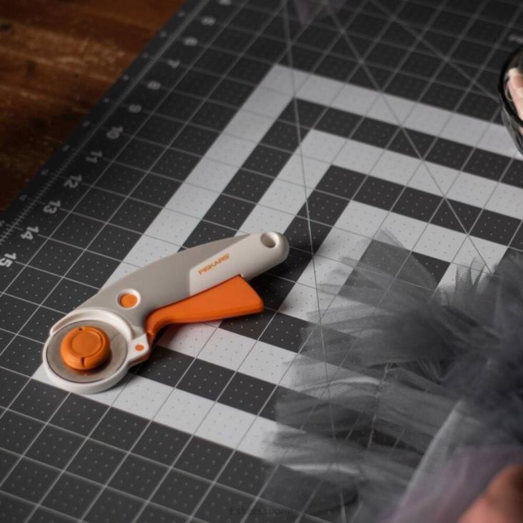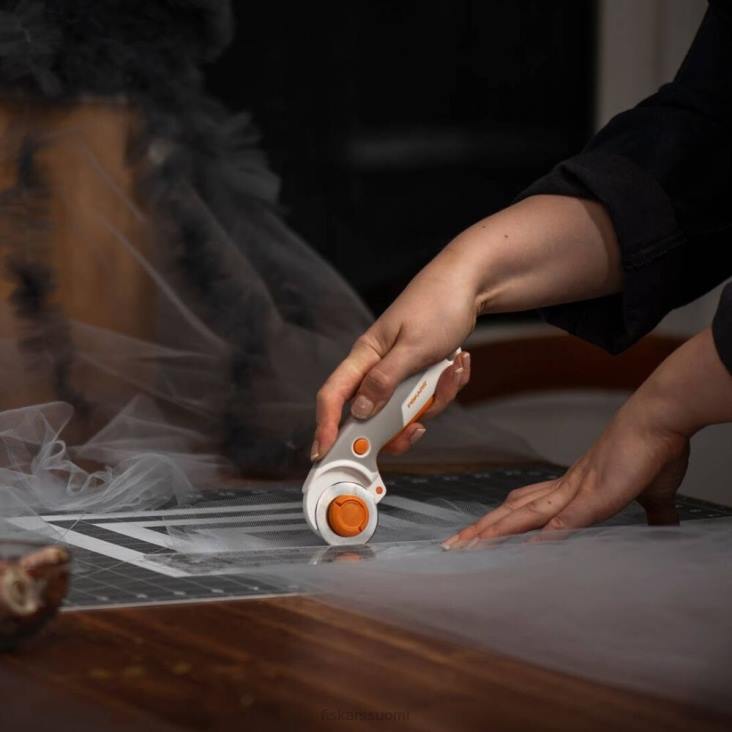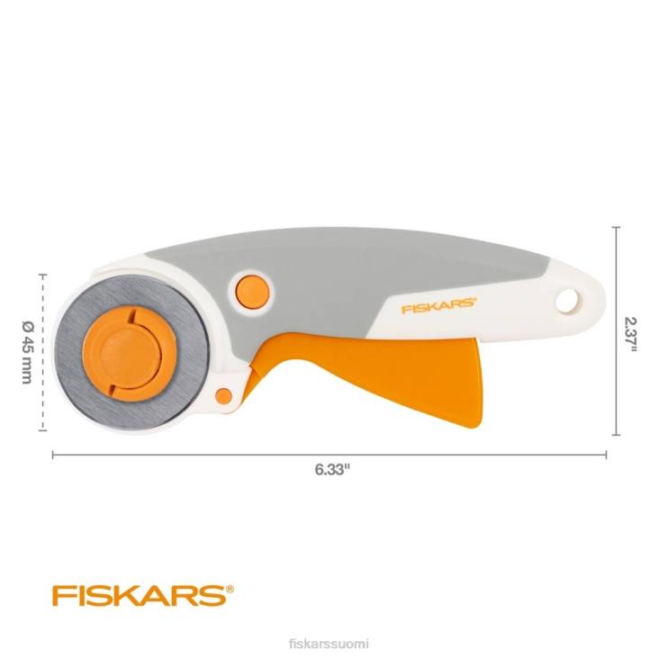 - fiskarsin helposti vaihdettava pyörivä leikkuri, 45 mm:ssä on magneettinen terä napajärjestelmä turvallisempaan, helpompaan ja nopeampaan terän vaihtoon