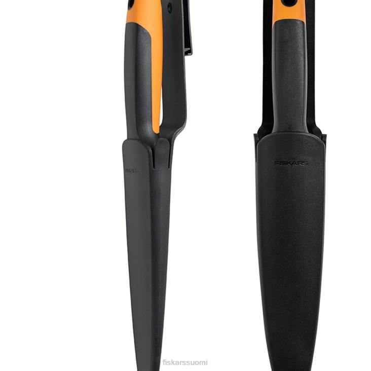 monikäyttöinen puutarhaveitsi, joka on suunniteltu kitkemään, istuttamaan, halkaisemaan, istuttamaan ja paljon muuta, fiskars & hori hori -puutarhatyökalussa on korroosionkestävä ruostumattomasta teräksestä valmistettu terä, jossa on pidennetty kärki. kestävyys. Tässä kaksiteräisessä veitsessä on terävä, tarkasti hiottu reuna turpeen ja juuriston läpi leikkaamiseen ja sahalaitainen reuna paksun kasvun sahaamiseen. haarukkakärki helpottaa kitkemistä, kun taas helposti luettavat englanninkieliset ja metriset mittaukset varmistavat tarkan istutussyvyyden. ergonominen, pehmeä kahva ja kahva tarjoavat mukavuutta ja hallintaa, kun taas mukana tuleva kovamuovisuojus vyölenkeillä takaa kätevän säilytyksen ja siirrettävyyden.