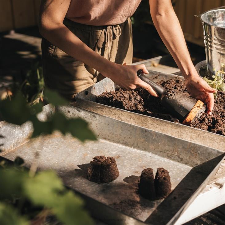 Fiskars & mullaharkkovalmistaja luo siemeniä aloittavia multalohkoja, jotka tuottavat terveellisempiä taimia ja vähentävät kertakäyttöisten aloitusalustojen ja palkojen tarvetta. maaperän lohkot edistävät vahvoja juurijärjestelmiä luonnollisen ilmaleikkauksen avulla ja estävät nuoria kasveja sitoutumasta juuriin. tämä vähentää siirtoshokkia ja tarjoaa tehokkaamman veden ja ravinteiden oton, kun kasvit siirretään ulos. rakenne itsessään puristaa siementä aloittavan maaperän asianmukaisesti ja varmistaa, että jokaisessa maapalassa on oikea määrä ilmaa, kosteutta ja koostumusta. luo yksi 3 1/2 tuuman lohko suuremmille siemenille ja kasveille tai neljä 1 tuuman maalohkoa pienemmille kasveille. Lisäksi työkalu asettaa reiän jokaisen lohkon yläosaan helpon ja optimaalisen siementen sijoittamista ja syvyyttä varten.