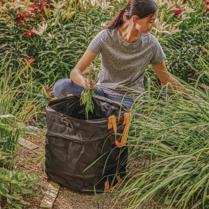 - kerää lehtiä, leikkeitä ja paljon muuta erittäin kestävällä fiskarsilla neliönmuotoinen kokoontaitettava puutarhalaukku (19 gallonaa)