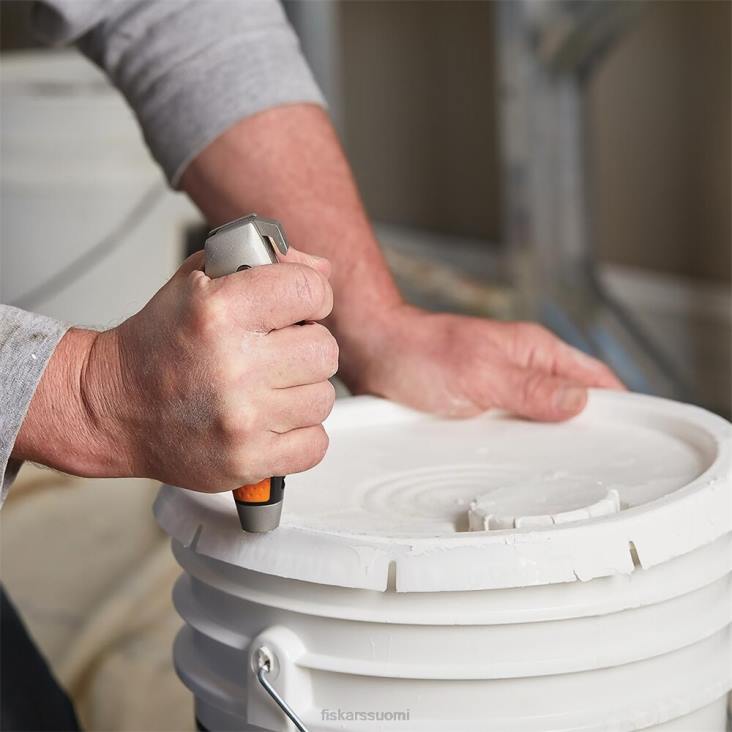 - fiskars pro maalarin veitsessä on 5 gallonan maalikauhan avaaja.t mahdollistaa pinttyneiden maalisäiliöiden kansien avaamisen helposti