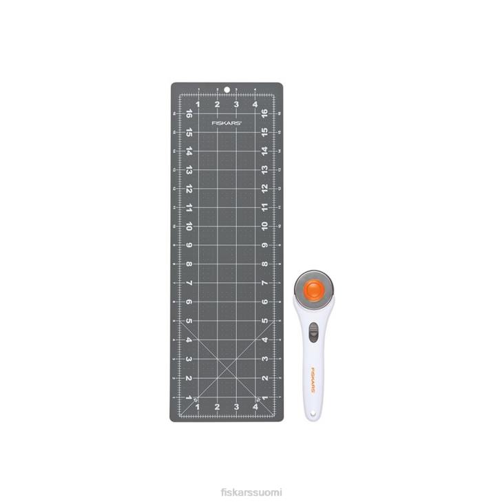 kangasleikkaussarjamme tarjoaa täydellisen yhdistelmän työkaluja perusompelu- ja tikkaustehtäviin. klassisessa pyörivässä leikkurissamme on 45 mm:n terä, joka on täydellinen useiden kangaskerrosten leikkaamiseen. kompakti leikkausmattomme on ihanteellinen koko helppoon kuljetukseen, kätevään säilytykseen tai kankaan leikkaamiseen pienessä työtilassa. siinä on itsekorjautuva matto, jonka molemmilla puolilla on mittaritilät, jotka kestävät muita leikkausmattoja. Mukana olevat vinoviivat tekevät muotoleikkauksesta ja kulmissa leikkaamisesta helppoa.