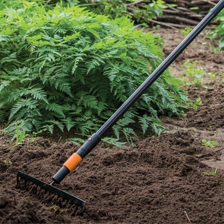 - Fiskars & quikfit -puutarhaharava on ihanteellinen maaperän ja multaamiseen ja tasoittamiseen leveissä puutarhapenkeissä