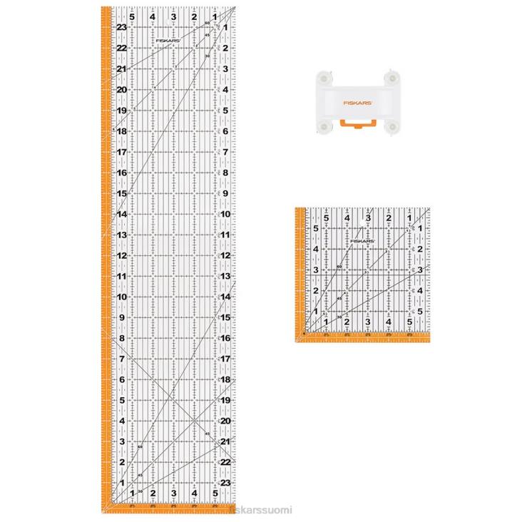- kirkkaat, 6,5″ x 6,5″ & 6,5″ x 24,5″ akryyliviivaimet antavat sinun nähdä leikkauskohdan ja sisältävät korostetut saumanvarat